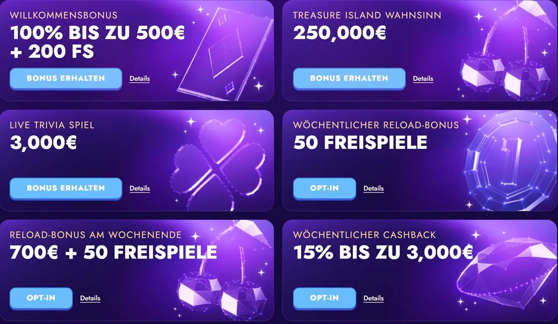 Jetzt wissen Sie, dass Sie es mit einem zuverlässigen und legalen Glücksspielbetreiber in Deutschland zu tun haben. Die hohe Bewertung von Casino wird durch positive Bewertungen von Spielern bestätigt, die die wachsende Anzahl an Spielen, großzügige Boni und schnelle Auszahlungen schätzen. Darüber hinaus haben Sie die Möglichkeit, sofortige Einzahlungen in Euro zu tätigen und über mobile Geräte zu wetten.