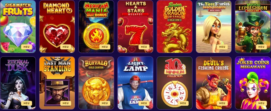 Dieser Bereich wird Sie stundenlang unterhalten. Er umfasst klassische Früchteslots, progressive Jackpots, Bonus-Buy-Spiele und viele weitere Varianten. Die Slots unterscheiden sich in der Anzahl der Walzen und Gewinnlinien. Zudem bieten viele von ihnen 3D-Grafiken, Animationen und integrierte Bonusfunktionen wie Wild-Symbole, Free Spins und Multiplikatoren.